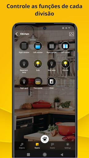 A interface está organizada de modo a permitir a navegação intuitiva por funções ou por ambientes: a linguagem iconográfica própria dos principais sistemas operativos, associada a etiquetas personalizáveis e à gestão típica dos dispositivos móveis (swipe) tornam a utilização da domótica Vimar extremamente intuitiva.