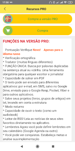 Estamos constantemente desenvolvendo e melhoraremos a aplicação. Novos recursos aparecerão. Após a atualização, novos recursos estarão automaticamente disponíveis para aqueles que compraram a versão PRO. Além disso, a funcionalidade livre será exibida.