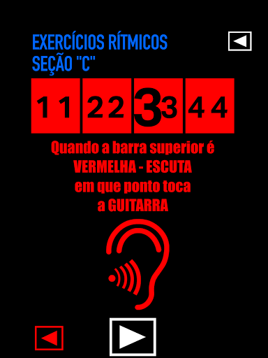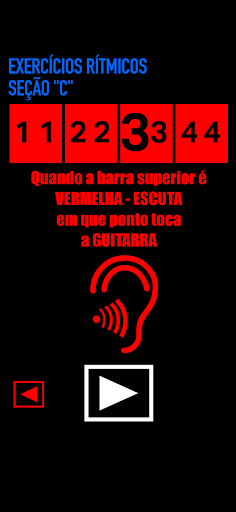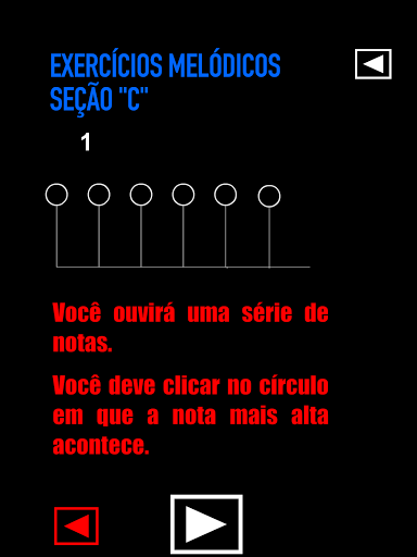 A SEÇÃO “C” tem um tipo diferente de exercícios de percepção musical que não estão relacionados a nenhuma música escrita. Os exercícios rítmicos nesta seção destinam-se a praticar a capacidade de reproduzir uma combinação rítmica apenas ouvindo-a. Nos exercícios melódicos desta seção você ouvirá uma série de sons e você terá que reconhecer o mais alto.