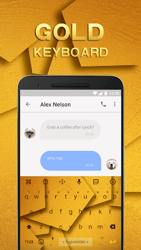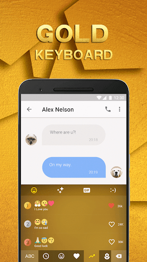 -Gold Emoji Keyboard Theme only works with Facemoji Keyboard GIFS installed on your phone. If you don’t have it, you will be automatically led to the Google Play download link,then download and choose Facemoji Keyboard GIFS as your default keyboard.