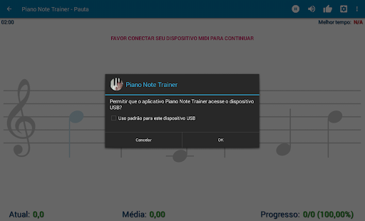 ✔ Agora pressionar qualquer tecla no seu piano deverá refletir no aplicativo (nota verde/vermelha).