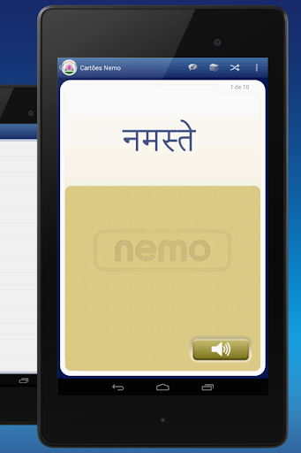 Com Nemo, você pode personalizar flashcards para exercitar a habilidade linguística que você quer melhorar. Ao começar um novo tópico, configure flashcards para praticar tradução de hindi para português para que você possa construir familiaridade com novas palavras. Em seguida, alterne para traduzir de português para hindi para treinar sua lembrança e habilidade para falar. Para completar o domínio, mude para cartões especializados em afinar a sua compreensão oral e aperfeiçoar sua pronúncia.