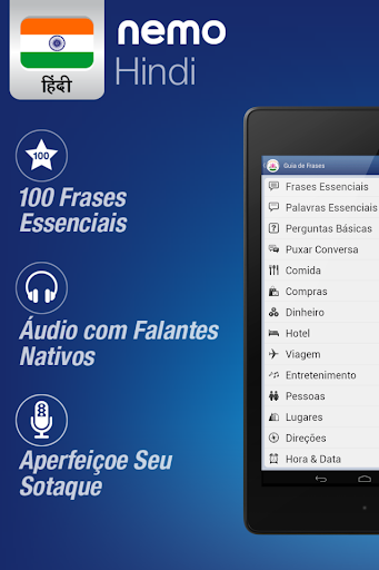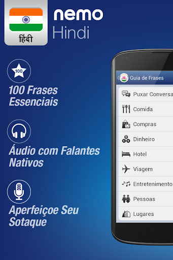 Nemo tem como alvo as palavras e frases usadas com maior frequência em conversação. Para iniciantes, preparamos as listas "Se For Aprender Só 10 Coisas", "Se For Aprender Só 50 Coisas" e "Se For Aprender Só 100 Coisas" para uma introdução rápida aos essenciais. Estudantes intermediários podem avançar para um curso das palavras de maior frequência necessárias para viagem, negócios e conversar a ter conversas em hindi em um mês. Estudantes avançados se beneficiarão mais da tecnologia do Speech Studio para corrigir seu sotaque estrangeiro.