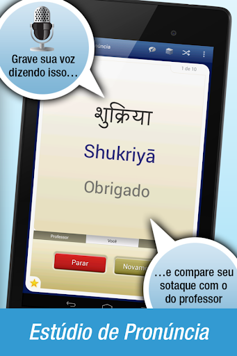 Este app para aprender hindi está disponível inteiramente em português e outros 10 idiomas.