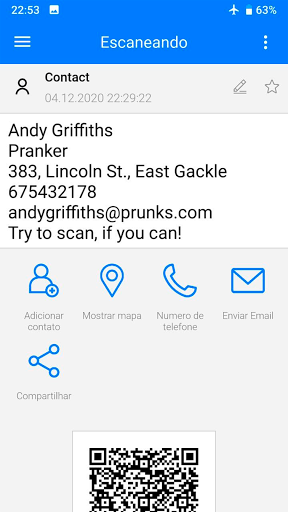 Não há necessidade de tirar uma foto ou pressionar um botão. Para ler um código QR ou código de barras, basta abrir o aplicativo, apontar a câmera para o código e aguardar alguns segundos.