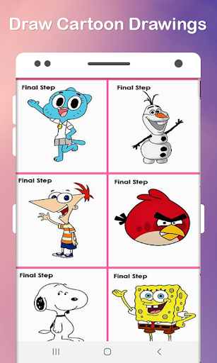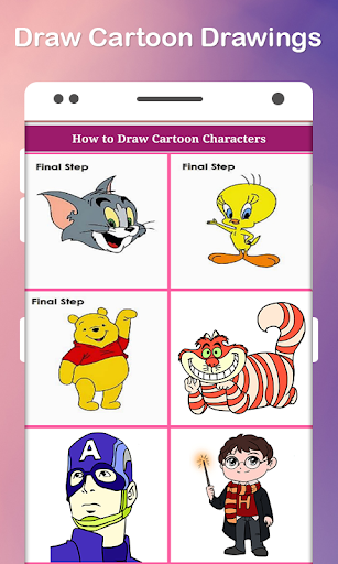 Este aplicativo mostra etapas fáceis de desenhar personagens de desenhos animados.Personagens.