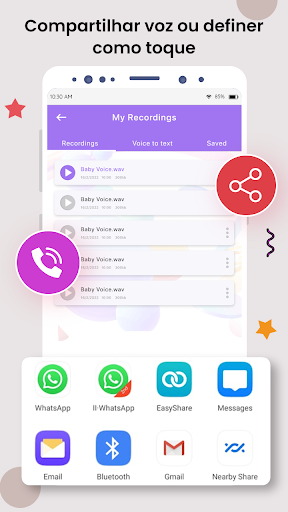 Você também pode gravar qualquer outro som neste gravador de som e aplicar vários efeitos sonoros a ele. Você certamente achará este gravador de som muito conveniente e interessante. Basta fazer sons gravar e salvá-lo neste aplicativo maravilhoso e se divertir. Você apreciará este registro de sons com efeitos sonoros engraçados e poderá compartilhá-lo facilmente com seus amigos.