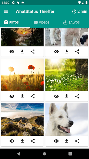 Volte para o WhatStatus Thieffer e clique na aba de "FOTOS/VIDEOS" para visualizar todos os Status dos seus contactos do WhatsApp Mensageiro/Business e em seguida, clique no botão "Salvar" para baixar permanentemente o status no seu dispositivo.