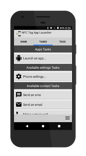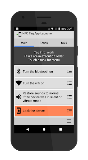 NFC Tag app & tasks launcher allow you to launch your preferred apps and some tasks by reading an NFC tag.