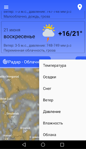Бесплатное приложение для предоставления ежедневных прогнозов погоды и ежечасных прогнозов погоды, предупреждений о суровой погоде, ежедневных обновлений погоды, прогноза шторма, виджет погоды, метеорологического радара и глобальной погоды с разными параметрами!