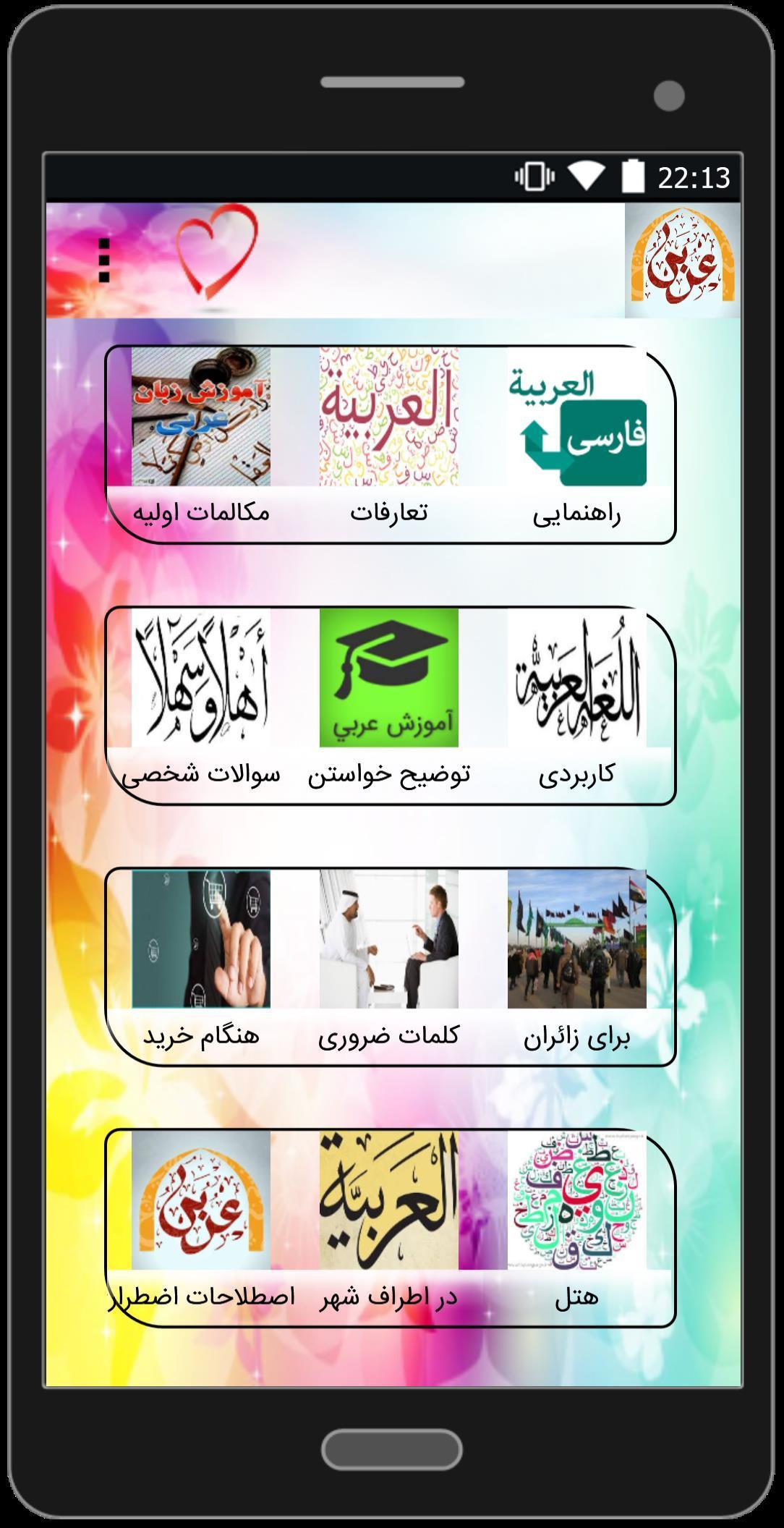 آموزش اصولی عربی از مبتدی تا حرفه ای با دسته بندی های مختلف برای آموزش بهتر و راحت تر هم در سفر میتوانید از این برنامه استفاده کنید و هم برای کمک در درس های دانش آموزان و دانشجویان
