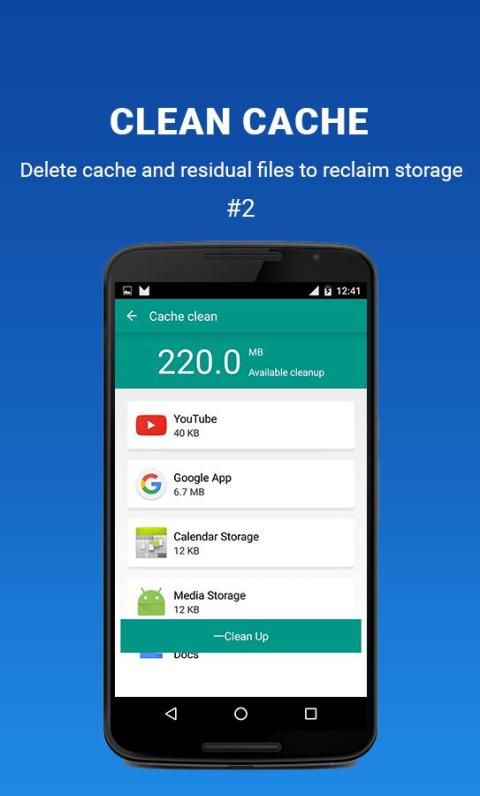 Delete cache and residual files to reclaim storage get more space to save your photos and messages.