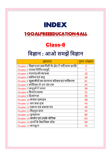 Contents of the 8th Class Science (विज्ञान) Solution UP-Board