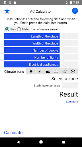 Теперь это просто, вам нужно всего несколько секунд, чтобы ответить на некоторые вопросы, и калькулятор переменного тока подскажет вам, какой тип кондиционера вам нужен, а также BTU / ч и все в соответствии с введенными вами данными.