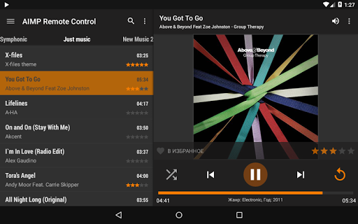 На ПК необходим плагин к AIMP (AIMP Remote Control Plugin).