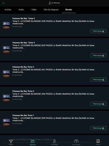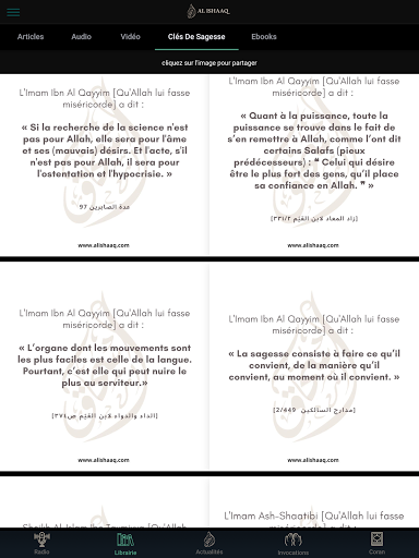 это приложение является основной целью распространения подлинной веры, нарисованного от Корана и Сунена для франкоязычного общественности.