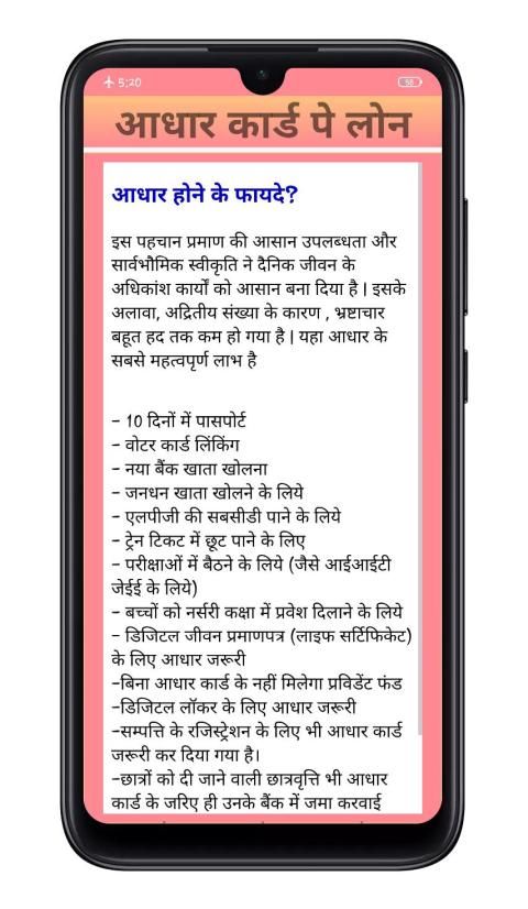 Adhar Loan in information is आधार कार्ड लोन ऑनलाइन Apply करे, Importances of Aadhar Card for India, Loans के लिए आवेदन करे , this Work is easy and simple formulla in this app for how to take adhar card pe loan Yes.