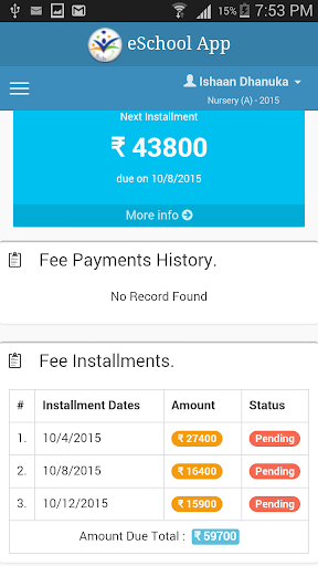 Пожалуйста, обратите внимание: если у вас есть несколько детей, обучающихся в одной школе, и школьные записи имеют Ваш мобильный номер для всех таких студентов, вы можете получить доступ к данным для всех ваших детей, записав на имя студента, появляясь на верхней правой стороне приборной панели. Данные для предыдущих классов также могут быть доступны в аналогичном порядке.