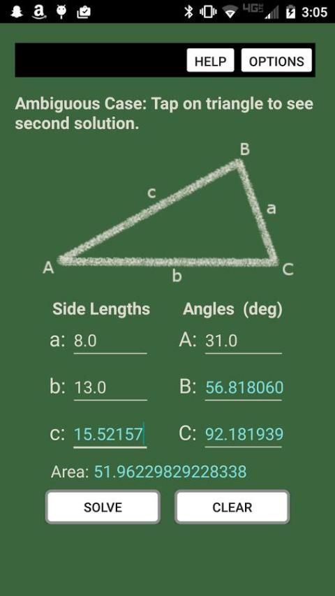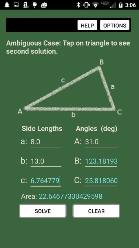* Ambiguous case! Solves this tricky problem with ease. It gives no solution, one solution, or even two solutions!