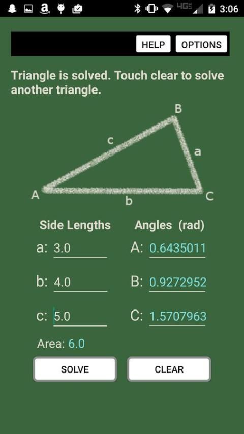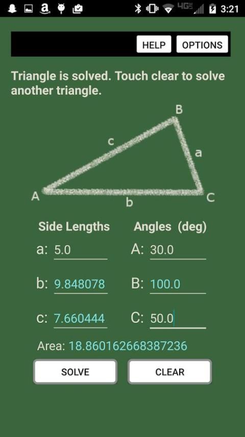 All Triangle Solver uses the Law of Cosines and Law of Sines to solve any triangle. Just input three pieces of known data about the triangle and the app does the rest. This app is perfect for checking answers to tedious math homework. This app can also be used as a tool in the workplace to save time and boost productivity. The best part is the app is completely FREE.