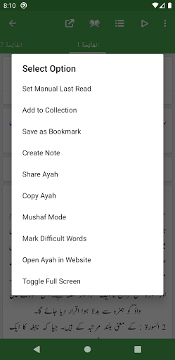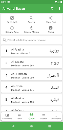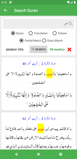 - Mushaf Mode: рекусируйте Коран с переводом (Tarjuma) или Tafseer