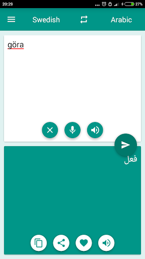 Этот бесплатный переводчик может быстро перевести с арабского на шведский и шведский на арабский (المترجم العربية-السويدية, Слова Svensk-Arabiska), а также полные предложения.Мгновенный перевод и полная обоснованность слов.Чтобы использовать