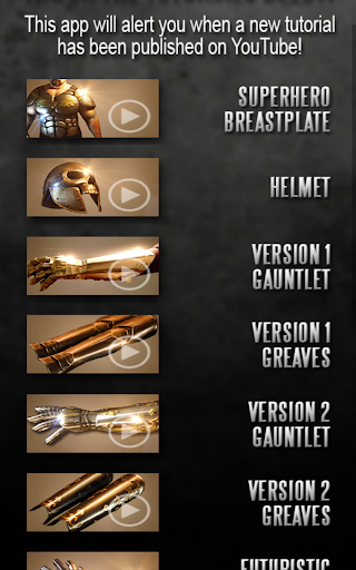With a simple click you can watch any of the detailed tutorials for gauntlets, helmets, shoulder armor and more!