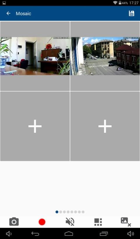 • Настраиваемый вид мозаики для одновременного живого изображения нескольких камер.
