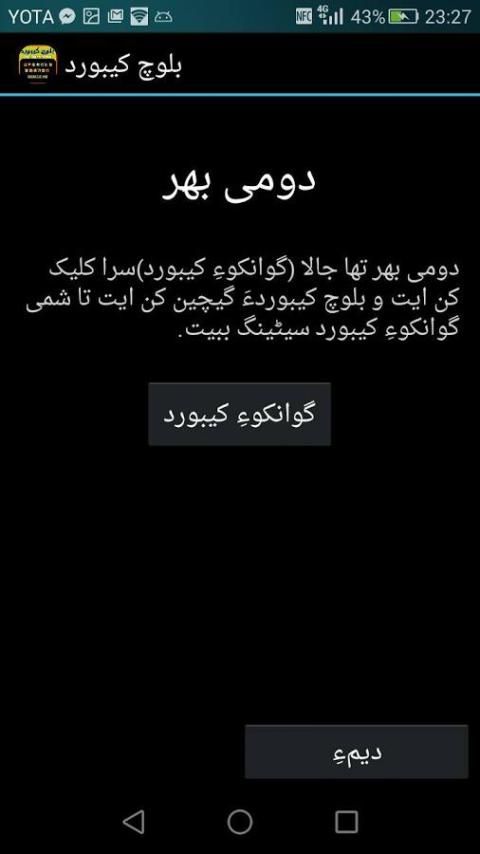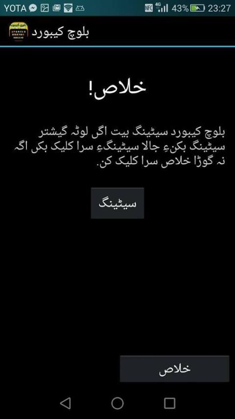 - Настройки телефона> Язык ввода> галочка بلوچ کیبورد