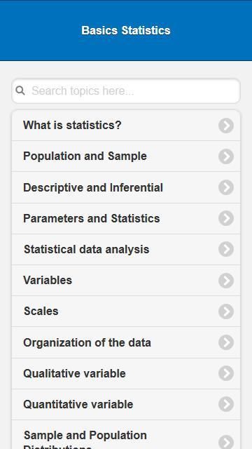 Если вы ищете основной статистики книги или приложения таким образом, вы находитесь в правильном месте. Это основное приложение из статистики предоставит вам наиболее важные и содержательные темы и главы в деталях с блок-схемы или изображения. Это базовое приложение статистики имеет удобный интерфейс с опцией тема поиска.