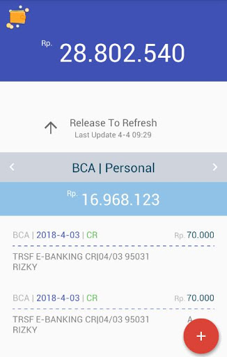Punya banyak rekening, tidak usah cemas lupa login internet banking. Tinggal tarik kebawah daftar transaksi yang terlihat di CekDuit, maka akan mengambil daftar transaksi terbaru di rekening