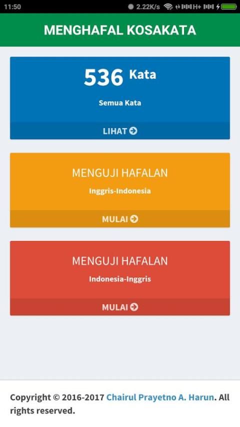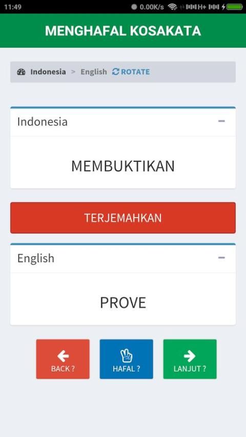 Aplikasi Ян dibuat Untuk mempermudah Dalam menghafal коша ката Bahasa Inggris
