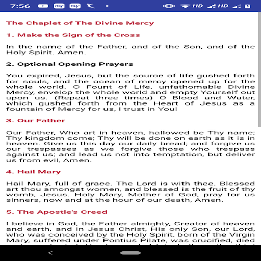 По словам видений Фаустины, написанные в своем дневнике, молитвы Челты за милость в три раза: получить милосердие, доверять милосердию Христа и показать милости к другим. Фаустина написала, что Иисус обещал Что все, кто читают этот качал в час смерти или в присутствии умирания, получат великую милость. Она написала, что Иисус сказал: