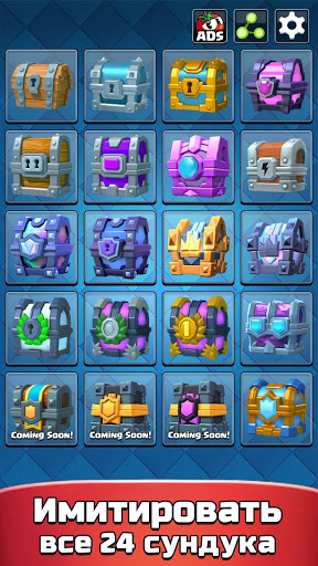 《Симулятор сундук для CR》 приложение для имитации падения карты из всех 24 сундуков в CR. Этот инструмент содержал все последние сундуки. Все сундуки свободны и могут быть открыты мгновенно. Используя этот предварительный симулятор, вы можете почувствовать счастье открыть много Супер-магический сундук за короткое время.
