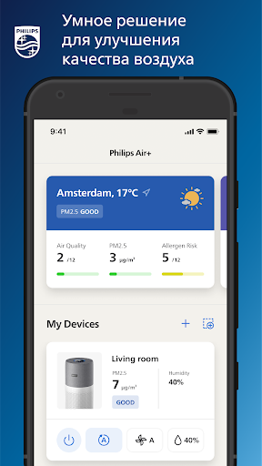 Вместе с устройством Philips Air приложение Air обеспечит удобство использования для повышения качества воздуха у вас дома.