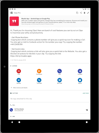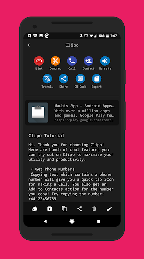 👍 Call: Filters your clips and detects phone numbers to give you a one tap to call experience!