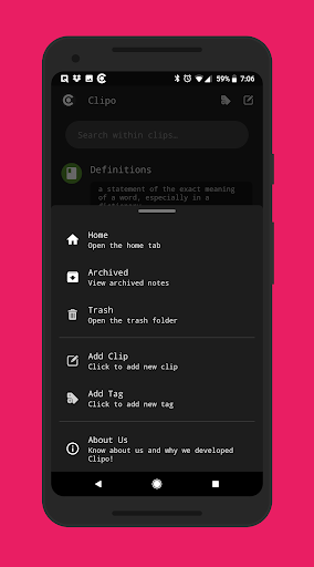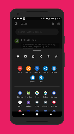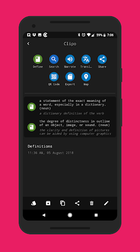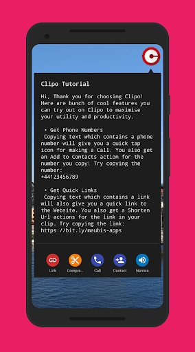 Clipo creates quick and smart actions for your copied text and shows them as a notification or a intuitive and beautiful list in the app!