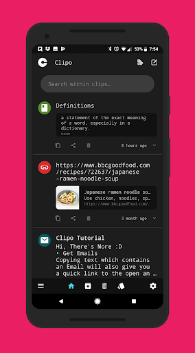 👍 See all your clips, in a clean and intuitive materially designed list! You can quickly copy an older clip to the Clipboard for using!