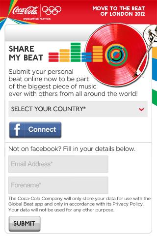 Make music using your own movement with the CocaCola My Beat MakerMake music using your own movement with My Beat Maker and get creative Bust out your own loops and beats based on the official CocaCola anthem for the London 2012 olympic games Mark Ronson featuring Katy Bs Anywhere in the World, just from the motion of your phone.When your beat is ready, upload and share it to The Global Beat the biggest musical collaboration ever