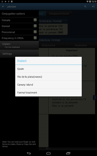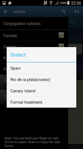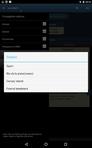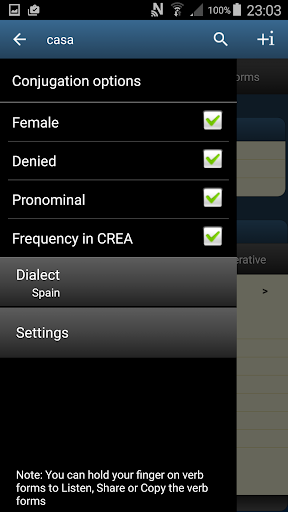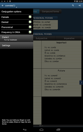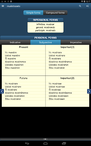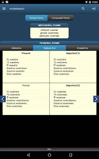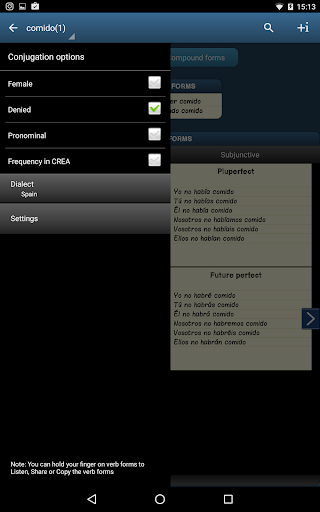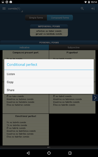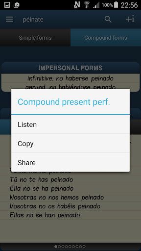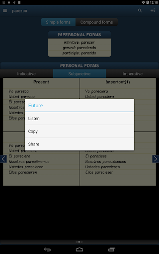 If you hold down a verb tense you can hear the conjugation and holding down a concrete form can hear just that. You can also copy and share with the same action.
