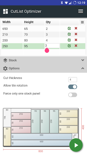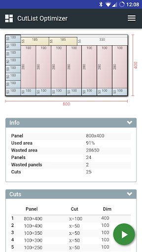 Максимизируйте производительность, снизив расходы на панели из дерева, металла, стекла, пластмассы и других промышленных материалов. CutList Optimizer поддерживает имперские футы и дюймы, метрические и дробные размеры. Данные сохраняются в Интернете, поэтому проекты будут синхронизироваться между Android и веб-сайтом.