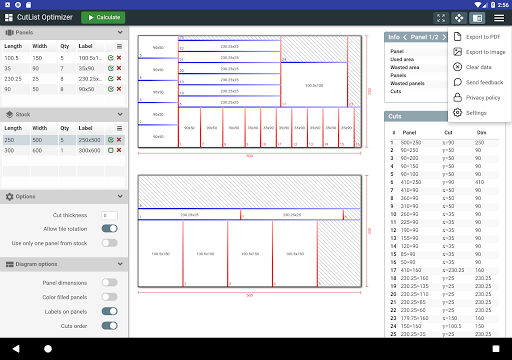 CutList Optimizer - это приложение, предназначенное для оптимизации резки панелей. Оно генерирует оптимизированные модели резки панелей согласно имеющимся в наличии материалам и необходимым элементам.