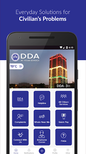 Стремясь доставлять эффективные услуги общественности, DDA вышла с «DDA на вашем сервисе».Это приложение предоставляет открытые каналы связи, благодаря которым граждане могут подать любые Geo-меченные жалобы и загрузки фотографий и отслеживать статус своих жалоб.Статус реального времени разрешения жалобы уведомлен до петиционеров, которые могли дальше отдать их отзывы об этом.После подачи жалобы гражданина заявка автоматически направляет его в соответствующий департамент / сотрудник и создает рабочий порядок, который может быть отслежен как отдел, а также заявитель, который также получит автоматические уведомления.Кроме того, приложение позволяет гражданам изучить коммунальные коммунальные услуги в близлежащих местах, таких как полицейские станции, стенды такси, больницы, станции метро, библиотеки, бензиновые насосы и т. Д.