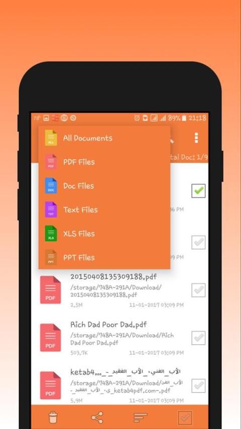Управление документами в вашем мобильном телефоне. Шорт XLS, PDF, DOC, TXT файлы в вашем мобильном телефоне. В этом приложении управления PDF, текст, Microsoft Word, Microsoft Excel и Microsoft PowerPoint документы в одном месте. Это очень простое и удобное приложение. Получить список всех документов, имеющихся в вашем смартфоне в одном месте. Легко удалять и разделять кучу documents.Search любой документ из списка. Вы можете читать и управлять каким-либо документ в любое время в любом месте. Классифицировать эти перечни документов и PDF-файлы, текстовые документы, MS Word, MS Excel, MS PowerPoint. Открыть файл в формате PDF, просмотр PDF файлов, просмотр текстовых файлов, просмотр TXT файлов, PDF Viewer. бесплатно PDF Viewer. сортировать файлы PDF.