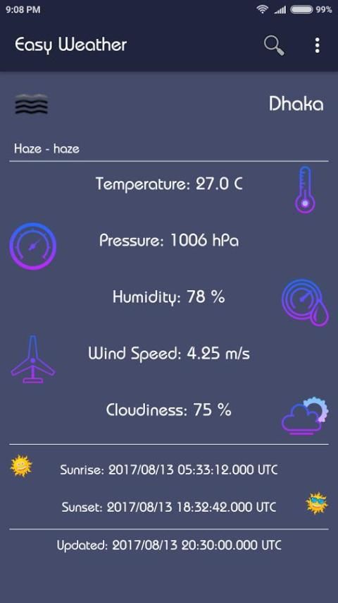 Easy Погода - Простое приложение Погода, где вы можете получить текущее состояние погоды с выбранного места в простом чистом интерфейсе.