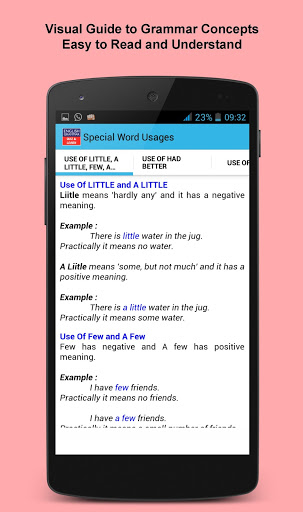 • To improve your Spoken English skills, our Learn English Grammar app will speak for you in American & British accents of english pronunciation.