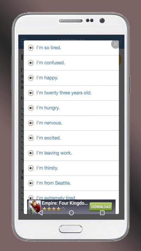 - Английский Говоря Basic содержит 90 уроков с более чем 900 звуковых файлов в этом приложении После того, как вы знакомы с основами английским языком.