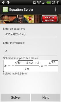 One can solve all kinds of Equations with it, without any problems. This Equation Solver is a must-have for every student, who is confronted with equations in his every day life.