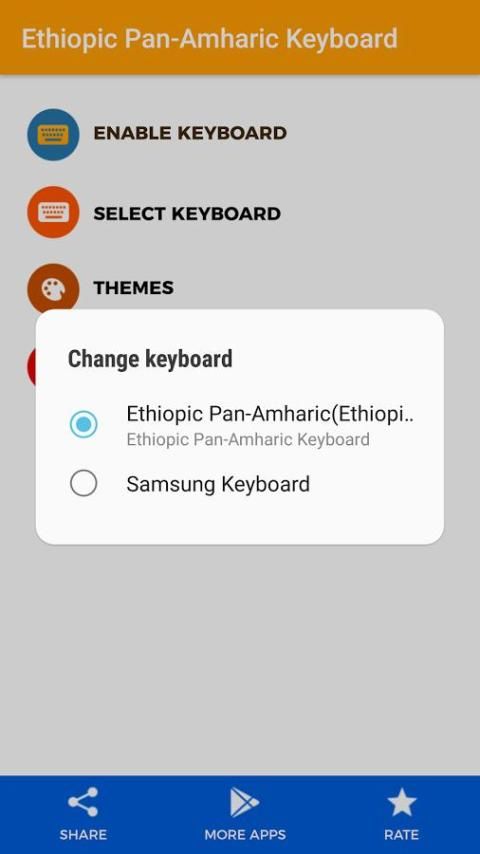 Эфиопские клавиатуры приложение позволяет ввести Ваше сообщение, статус, Tweet, сообщения электронной почты и т.д. в эфиопском языке. мы также дает превосходный глаз ловли темы из эфиопской клавиатуры.