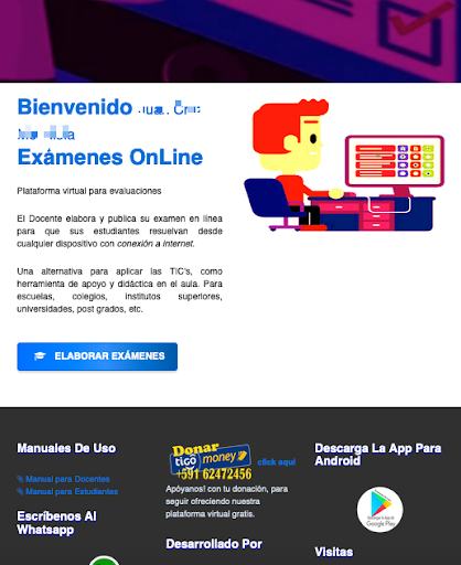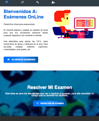 Espacio virtual para ti maestr@, docente, profesor, catedrático donde puedes elaborar tus exámenes y publicarlos para que tus estudiantes lo resuelvan en línea desde cualquier dispositivo móvil con acceso a internet.
